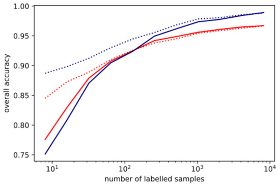 The labelled data originate from four hyperspectral datasets commonly used to evaluate classification algorithms: Pavia University, Indian Pines, Samson, and Jasper Ridge. The Pavia University scene was acquired by the ROSIS sensor [50] and the Indian Pines scene was acquired by the AVIRIS sensor [51], with preprocessing described in [52]. In each scene, a subset of the pixels is classified into 9 or 16 classes, respectively. The latter two images, described in [53], each pixel is partitioned into different endmembers. The class of each pixel is then defined as the endmember with the largest weight.