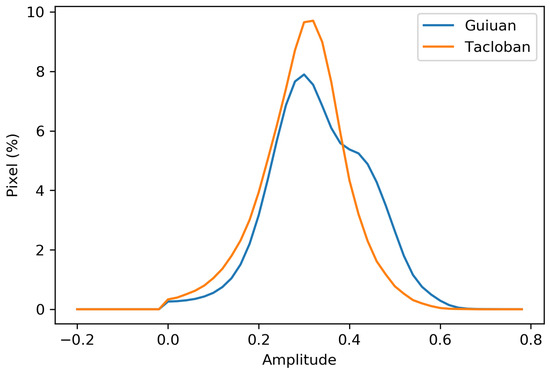 Amplitude histogram of the Guiuan and Tacloban areas.