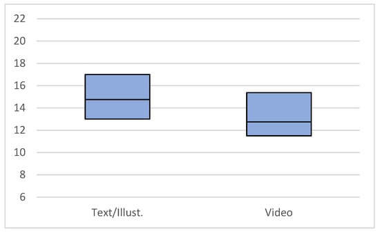 As shown in the results, both materials succeeded at covering the topics, raising the mean of the outcome score from 14.38 to 17.20 out of 21.5 in the case of the text and illustration group and 13.07 to 17.82 out of 21.5 for the video group. Even though both groups changed significantly in the end, there was little room for more improvement, and the statistical ceiling effect when approaching the maximum of the possible scores might be in play.