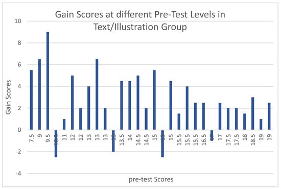 Looking at the gain scores in Figure 6 for the text/illustration group, a few cases are visible where the gain was negative, meaning that the post-test score was lower than the pre-test score. This is also visible in the video group, but mainly at the upper end of the scale where this can be expected since the margin of error here is lower. In the text/illustration group, this loss of gain was more severe and spread more evenly. A possible explanation could be a form of subject attrition that, in long-term or demanding studies, would cause participants to leave the study [27].