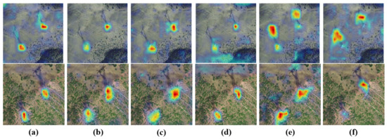 Figure 9 shows the visualization results of the networks used in the experimental part. Combining Table 2 with Table 3, it can be seen that these networks can all complete the detection task. Networks such as Faster R-CNN, TSD, ATSS, and Retinanet perform relatively ordinarily on these two data sets. SI-STD performs better when the satellite perspective is small, while the precision decreases when the satellite perspective increases. This may be due to the increase of the satellite perspective, and the target features gradually become obvious. SI-STD basically only pays attention to the target, so the shadow next to target will interfere with the detection. STC-Det performed well in both cases, which may be due to the separate use of shadow and target features and the different weights of shadow and target.