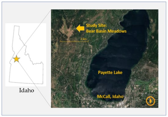 Field data were collected at Bear Basin Meadows in the Payette National Forest (McCall Ranger District) near McCall, Idaho at 1640 m elevation (Figure 2). Bear Basin Meadows is a large meadow complex surrounded by montane forest in the mountains of west-central Idaho.