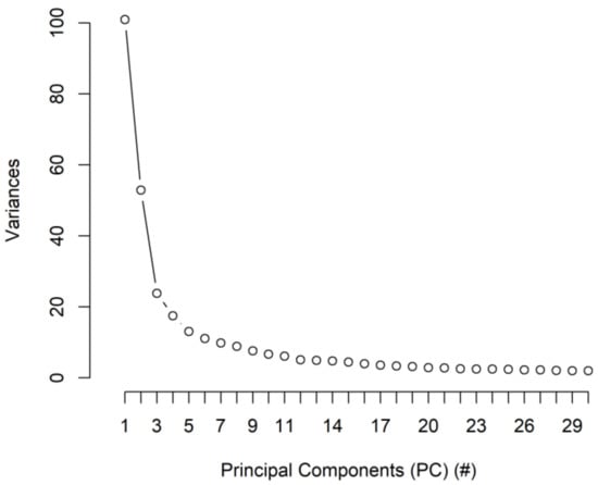 Scree plot used to select the number of PCs to capture a minimum of 90% variability (n = 11).
