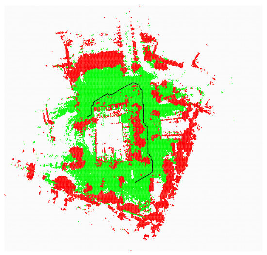 This work used the resulting point cloud (Figure 7). The point cloud was created by fusing data from the three LiDAR sensors and data from odometry (measurement on the wheels by the onboard system of a vehicle and information from the IMU sensor).