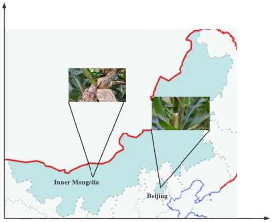 The data set used in this paper was collected from the Science Park in the west campus of China Agriculture University and Vocational and Technical College of Inner Mongolia Agricultural University. As shown in Figure 1, there are 2735 normal images, 521 sheath blight images, 459 rust images, and 713 northern leaf blight images, altogether 4428 images.