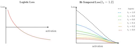 - Amid, E.; Warmuth, M.K.; Anil, R.; Koren, T. Robust bi-tempered logistic loss based on bregman divergences. arXiv 2019, arXiv:1906.03361. [Google Scholar]