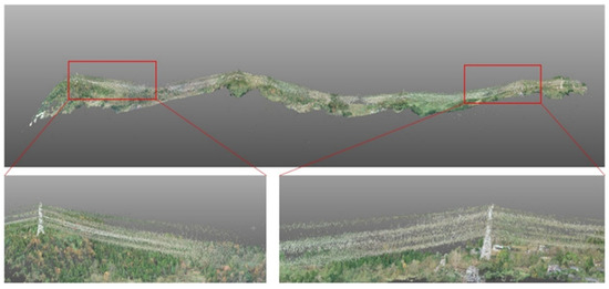 - The inaccurately estimated distortion parameters have an adverse impact on the 3D point clouds generated by dense matching technology. The power lines in UAV images of high-voltage transmission are usually 1~2 pixels in width. When the distortion parameters are estimated inaccurately, the reconstructed point clouds of power lines are noisy and diverged around. Figure 3 shows the dense point clouds reconstructed by ColMap with inaccurate camera distortion parameters.