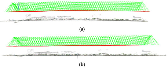 With the advantages of flexible data acquisition and ease of use, UAV has become one of the most important remote sensing platforms for the photogrammetry and remote sensing community [1]. The UAVs have the characteristics of small size, autonomous vertical take-off and landing with low site requirements, high flight safety performance, and the flexibility to adjust the direction of flight, making them widely used for the regular inspection of high-voltage transmission line corridors [2,3,4,5,6]. However, the UAV platforms are often equipped with consumer-grade, non-metric digital cameras, mainly due to the limitations of the platform’s load capacity. These cameras have non-ignored lens distortions when compared with metric sensors, which influences the robustness and precision of AT. The long corridor structure of UAV images is a critical configuration, and the reconstructed model would be bending with the inaccurately estimated distortion parameters. For example, Figure 1 illustrates the “bowl effect” of self-calibration with commercial software and open-source software for long corridor UAV images because of the failure in camera distortion parameter estimation. Thus, it is very critical to accurately estimate the distortion parameters of cameras for high-precision AT.