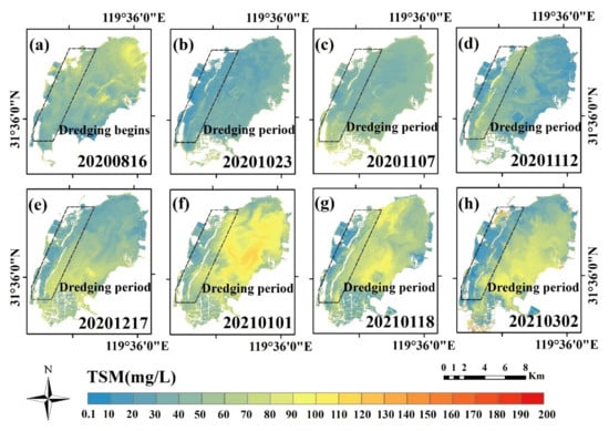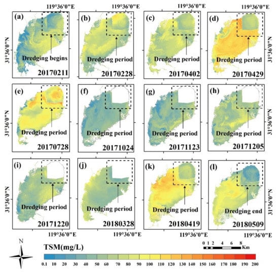- The TSM concentration in Changdang Lake exhibited evident seasonal variations, exhibiting higher values in spring and summer and lower values in autumn and winter. By monitoring the ecological dredging process of Changdang Lake, it was found that the ecological dredging project might improve the water quality in Changdang Lake to some extent.