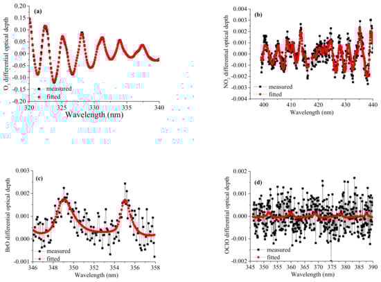 - Aliwell, S.R.; Van Roozendael, M.; Johnston, P.V.; Richter, A.; Wagner, T.; Arlander, D.W.; Burrows, J.P.; Fish, D.J.; Jones, R.L.; Tornkvist, K.K.; et al. Analysis for BrO in zenith-sky spectra: An intercomparison exercise for analysis improvement. J. Geophys. Res. Atmos. 2002, 107, ACH-10-1–ACH-10-20. [Google Scholar] [CrossRef]