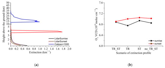 | 1 | Different _Wavelength_SZA | 320, 330, 340 | SZA > 75°, SZA > 65°, SZA > 55°, SZA > 45°, SZA > 35°, SZA > 30° | Radiosonde on 30 August 2020 | TR_ST (TR: tropospheric aerosol extinction profiles from Lidar; ST: stratospheric aerosol extinction profiles from Calipso) | Daily TPH (T, P, and RH profiles from the operational meteorological soundings at sunrise and sunset on 30 August 2020) |