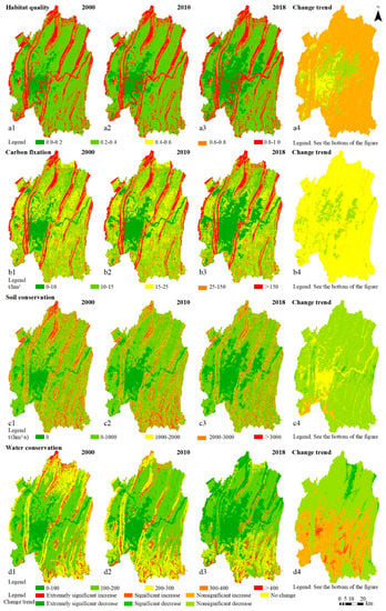 Spatial distributions and change trends of ESs.