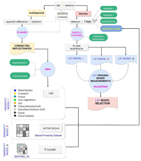 This method is based on the Carlson and Ripley [69] model. Finally, the conversion from LTOA to LST is estimated by using the constants for sensor calibration and the inversion of the Planck equation [71].