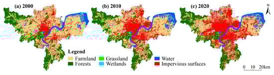 Land-use maps of Hangzhou City from 2000 to 2020.