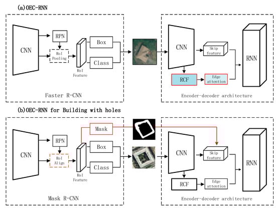 The network of OEC-RNN and OEC-RNN for buildings with holes. (a) Network structure of OEC-RNN. (b) Network structure of OEC-RNN for buildings with holes.