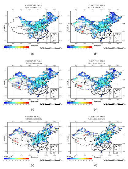 - Liu, J.; Weng, F.; Li, Z.; Cribb, M.C. Hourly PM2.5 Estimates from a Geostationary Satellite Based on an Ensemble Learning Algorithm and Their Spatiotemporal Patterns over Central East China. Remote Sens. 2019, 11, 2120. [Google Scholar] [CrossRef] [Green Version]