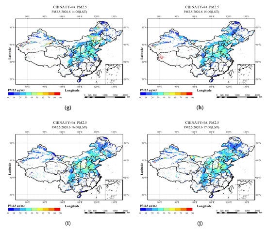 Average hourly PM2.5 concentration in 5–6 and 9–10 June 2020, 8:00–17:00 (LST), from (a) to (j).