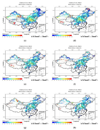 AOD, RH, BLH, and other auxiliary data and calculation methods used by the two pollutants are similar, while the ground monitoring data are different. The calculation of PM is highly dependent on the coverage of the AOD and its temporal and spatial resolution. Thus, for PM2.5 and PM10 estimation, hourly and 1 km resolution can be achieved.