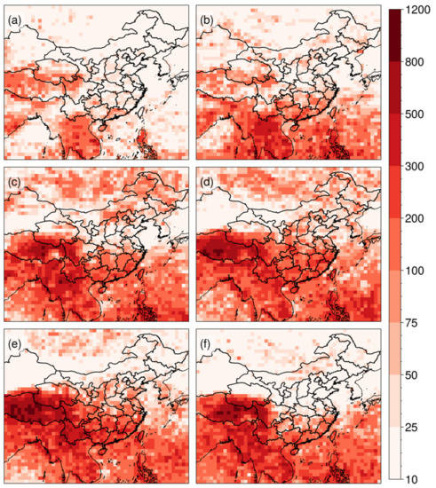 Deep convective systems occur frequently in China and its vicinity during the warm season, producing a wide range of severe weather phenomena, including heavy rainfall, lightning, hail, damaging winds and even tornadoes [1,2,3,4,5,6]. Deep convective precipitation affects hydrological processes and regional and global climate through redistribution of water and energy. Therefore, improving the understanding of deep convective systems occurrences and initiation, over China, especially in the regions with complex terrain (such as the Tibetan Plateau (TP) and near-shore oceans), is critical to advancing our knowledge of hydrologic and climate systems and producing accurate predictions of convective damages.