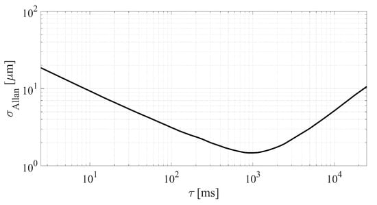 To analyse the temporal variability of the random instrumental effects, we compute the Allan deviation (ADEV) of the time series of cumulative displacements. The Allan deviation is defined as