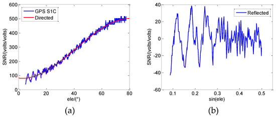 SNR sequence data processing: (a) GPS S1C SNR and direct signal fitting; (b) reflected signal extraction.