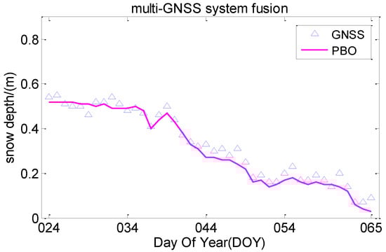 Comparison of the mean fusion results of multi-GNSS system with PBO snow depth.