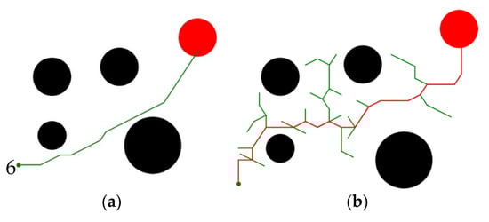 The global path planning results comparison. (a) D3RQN, (b) RRT.