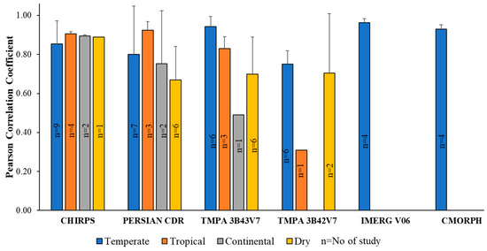 Precipitation is one of the major components of the Earth’s hydrological cycle [1]. In recent years, satellite precipitation products (SPPs) have emerged, making SPPs an essential data source for climatological and hydrological studies [2,3]. SPPs are typically retrieved from passive microwave, satellite-based infrared, and space-borne precipitation radar [4]. There are now many SPPs available, such as Climate Prediction Center MORPHing method (CMORPH) [5], Climate Hazards Group infrared precipitation with station data (CHIRPS) [6], integrated multi-satellite retrievals for GPM (IMERG) [7], precipitation estimation from remotely sensed information using artificial neural networks—climate data record (PERSIANN-CDR) [8], tropical rainfall measuring mission (TRMM) [9] and many others. SPPs have proven to provide data at a high spatial and temporal scale [10]. Moreover, they are capable of producing precipitation data even in inaccessible areas [11,12,13].