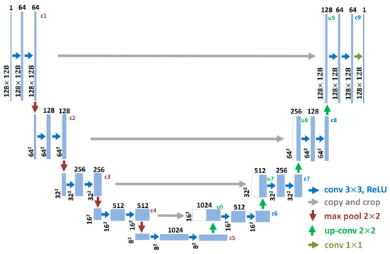 - Ronneberger, O.; Fischer, P.; Brox, T. U-net: Convolutional networks for biomedical image segmentation. In Proceedings of the 18th International Conference on Medical Image Computing and Computer-Assisted Intervention, Munich, Germany, 5–9 October 2015; pp. 234–241. [Google Scholar]