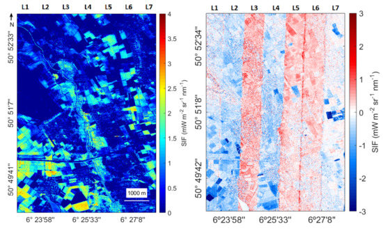 3.3. Application of the SIF Emulator to an Entire Flight Line and Adjacent Flight Lines