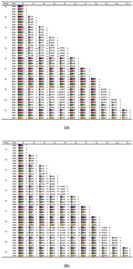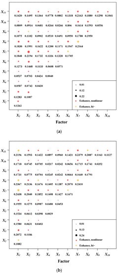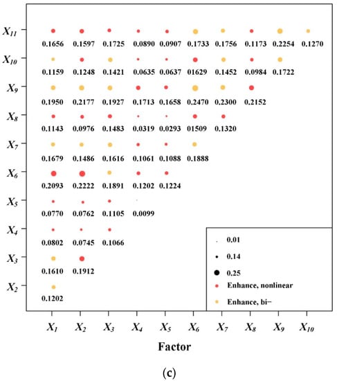 where NX1 and NX2 are the sample numbers of factors X1 and X2, respectively; SIVX1 and SIVX2 are the sum of the internal variances of the strata from factors X1 and X2, respectively; and L1 and L2 are the strata numbers of factors X1 and X2, respectively.