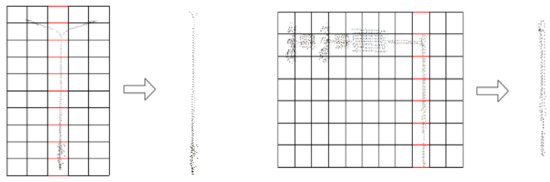 When the continuous 3D voxels appear in a vertical column and have point clouds that fall into the 3D voxel, these voxels will be retained, and the retained point clouds are the rod-shaped part of the pole-like objects. The schematic diagram of the retention method is shown in Figure 3.