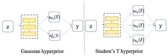 Hyperprior neural network. The left side is the Gaussian hyperprior, which is used to estimate the mean and variance , while the right side is the Student’s T hyperprior, which is used to estimate the mean , precision and the degree of freedom .