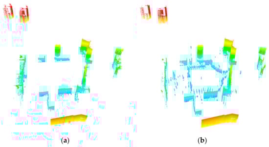Since the first type of error often occurs at close-range to buildings with a relatively large point density, it covers the highest proportion of missing detections. However, considering that the points near ground are usually regarded as unreliable for building model reconstruction because of complex environment and foreground occlusion [], this error has little influence on building structure preservation. Indoor points scanned from outside are usually discrete and can hardly represent the shape of an object. Thus, the first two types of errors have little effect on the application of building scanning data. Although the last two error types correspond to very few points, they usually cover relatively large area and may cause the missing detection of continuous facade areas or a single building.