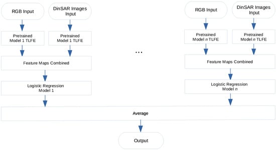 Ensembles have been shown to increase accuracy and stabilize the results for varying signal-to-noise ratios and deformation rates in previous work and in other domains [,]. Transfer learning was proven effective at bringing the increased accuracy of deep learning to smaller data sets at reduced computational cost. Having an understanding of how these techniques might be combined to improve change detection on a relatively small urban change detection dataset is of practical and theoretical importance. Unfortunately, limited (if any) research has been done to organize current approaches to ensemble leaning in a transfer learning paradigm []. Furthermore, little empirical evidence has been created to evaluate how these different methods might compare and how they stack up against non-deep learning approaches.