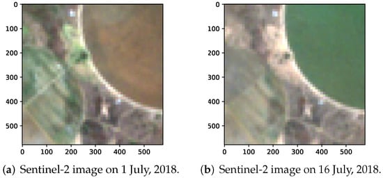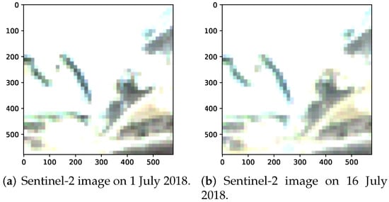 Gargiulo et al. [] used multitemporal Sentinel-1 imagery combined with Sentinel-2 imagery over the Albufera Lagoon in Valencia to generate segmentation maps in areas where cloud cover affects the land cover mapping. A deep learning CNN, named W-net, is developed that results in an increase in performance at a lower computational cost compared to just using the Sentinel-2 imagery [].