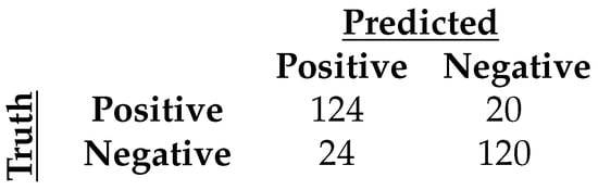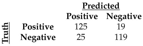 A multi-layer perceptron (MLP) is an artificial neural network trained by the supervised machine learning method called backpropagation. It has an input layer, hidden layers with non-linear activation functions, and an output layer. It can be used to classify non-linear data [,,]. The regularization, alpha, hyperparameter of the MLP classifier was grid searched using the following values (0.001, 0.01, 0.1, 1.0, 10.0, 100.0).