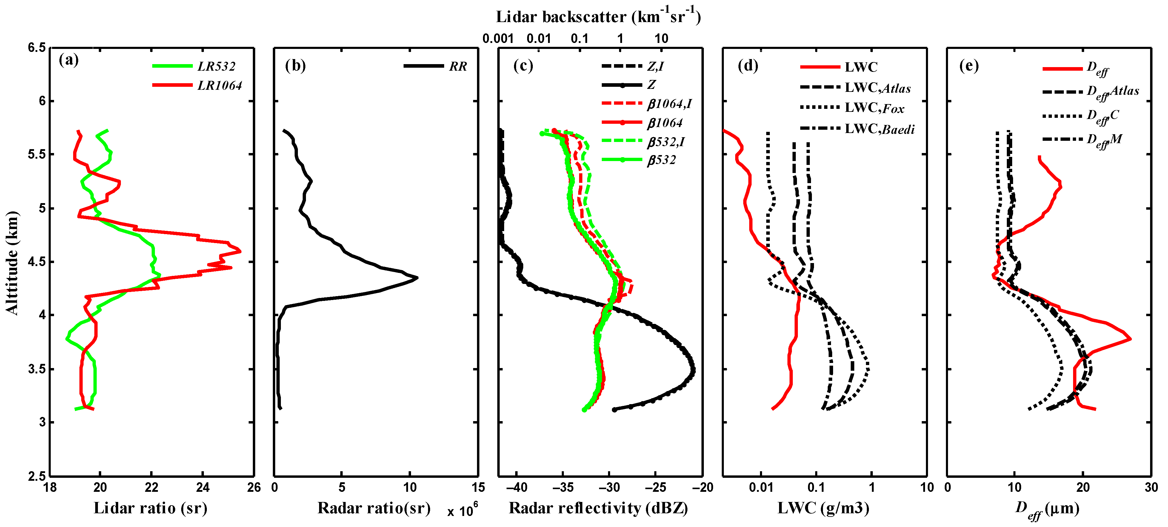 - Donovan, D.P.; Lammeren, A.C.A.P. van Cloud Effective Particle Size and Water Content Profile Retrievals Using Combined Lidar and Radar Observations: 1. Theory and Examples. J. Geophys. Res. Atmos. 2001, 106, 27425–27448. [Google Scholar] [CrossRef] [Green Version]