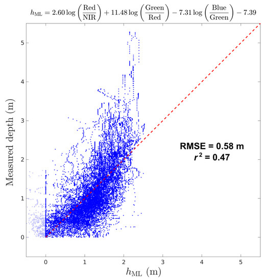 - Niroumand-Jadidi, M.; Vitti, A.; Lyzenga, D.R. Multiple Optimal Depth Predictors Analysis (MODPA) for river bathymetry: Findings from spectroradiometry, simulations, and satellite imagery. Remote Sens. Environ. 2018, 218, 132–147. [Google Scholar] [CrossRef]
