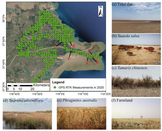 - Gong, Z.; Zhang, C.; Zhang, L.; Bai, J.; Zhou, D. Assessing spatiotemporal characteristics of native and invasive species with multi-temporal remote sensing images in the Yellow River Delta, China. Land Degrad. Dev. 2021, 32, 1338–1352. [Google Scholar] [CrossRef]