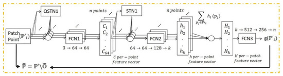 The PointNet [17] deep neural network accommodates unstructured point clouds as input without voxelization [18]. It provides a unified architecture for a wide variety of applications, including object classification, part segmentation, and the semantic parsing of scenes. PointNet handles point sets in its architecture via a symmetric function for unordered input, aggregating local and global features to solve point interactions, and includes an alignment network to make the model invariant to transformation. The PointNet network has three main components: a max-pooling layer as a symmetric function to aggregate information from all the points, a local and global information combination structure, and two joint alignment networks [19], one for input points and the other for feature points.