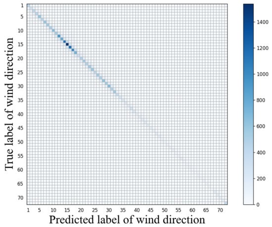 In Equation (9), n is the number of samples. is the true value of the wind direction from the ECMWF reanalysis data set, and is the middle value of the predicted wind direction interval (the middle value of label 1 interval is 2.5°, and that of label 2 interval is 7.5°).
