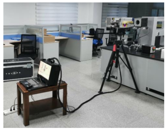 Before the measurement of the targets, the two blackbodies were measured for the radiometric calibration, and their temperature stability was found to be less than 0.03 K. It should be noted that the radiance spectra of the cold and warm blackbodies should frame all the radiance spectra emitted from a scene (Figure 7) to avoid the nonlinearity of instrument response. At the same time, it is recommended that the cold blackbody temperature should be just below ambient temperature and the warm blackbody temperature should be just above the warmest sample temperature. Since the temperatures of two internal blackbodies can be adjusted manually, the temperatures of cold and warm blackbodies should be set to around the values of corresponding temperatures of the coldest and warmest targets. In this study, the temperatures of the cold and warm blackbodies were set to 10 and 30 °C, respectively. Attention should also be paid to ensuring that the acquisition duration of a TIR HSI should be as short as possible in order to guarantee environmental consistency and exclude sample temperature variation during the measurement time. Here, the data acquisition was conducted at 40 min after powering on the instrument. Limited by the focal length of the instrument, the distance between the measured samples and the sensor was 1.7 m in this study.