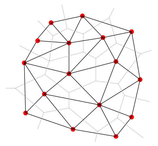- Watson, D.F. Computing the n-dimensional Delaunay tessellation with application to Voronoi polytopes. Comput. J. 1981, 24, 167–172. [Google Scholar] [CrossRef] [Green Version]