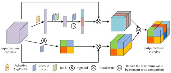 Inspired by csSE [], this paper designs the global 3D attention module, as shown in Figure 4. The global 3D attention module fully considers the global information and effectively extracts the spectral and spatial context features, so as to enhance the ability of feature representation.