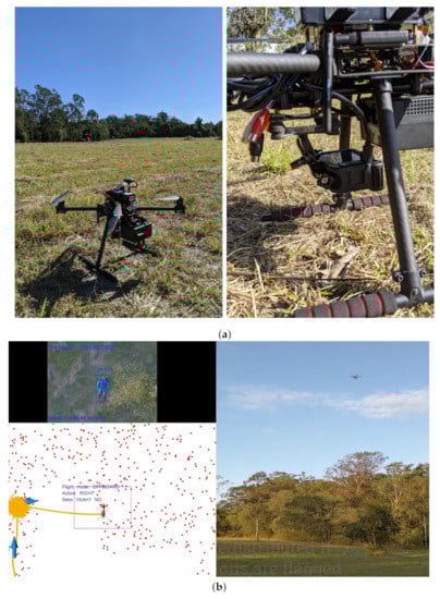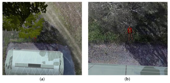 Recent advances in autonomy of unmanned aerial vehicles (UAVs)—or drones—have increased their adoption in time-critical applications, such as disaster monitoring, surveillance, and SAR [,,,]. Compared to manned aircraft, UAVs offer high versatility to scout areas due to their reduced size and cost, extensive payload adaptability, and ease of piloting by incorporating automated tasks, including waypoint navigation, obstacle avoidance, and autonomous take-off and landing [,,]. In time-critical applications, such as SAR, real-time camera streaming is critical for UAV operators to understand the situation context and manoeuvre the aircraft during the mission []. However, this strong reliance in the communication system compromises the usability of UAVs if such systems fail []. Furthermore, operators are susceptible to fatigue in the long run by controlling the UAV and photo-interpreting streamed camera frames to find victims []. As a result, developing decision-making algorithms onboard UAVs could further expand their applicability in civilian and time-critical applications. UAVs enriched with autonomous onboard object detection for real-time decision making eliminate the dependency of UAV pilots to photo-interpret streamed frames, and in their communication systems to control the aircraft.