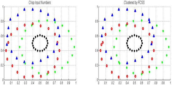 In this state, we apply VFCSS clustering over LR-type fuzzy numbers with the same conditions as for state 1. Simulation results of the corresponding two steps of this state are demonstrated in Figure 4 and Figure 5. The CM of these two steps is expressed in Table 10.