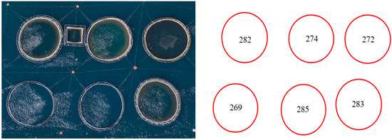A fish farm satellite image (Left) and the extracted circles from the image and radii results (Right) using VFCSS algorithm.