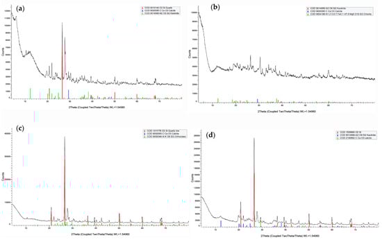 The XRD analysis of four representative samples revealed the mineralogical characteristics of the HAZs. The results revealed the presence of advanced argillic alteration along with carbonates and silicification. Propylitic alteration is represented in the existence of chlorite and calcite in the advanced argillic (kaolinite), silicification (quartz), and K-alterations (orthoclase) (Figure 11).