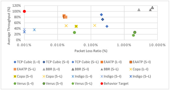 In addition, other modern transport protocols, such as TCP BBR [43], Copa [44], Indigo [45], and Verus [46], can achieve high performance, as proven in several physical tests carried out by Stanford University’s platform Pantheon [45]. TCP BBR is one of the top-performance protocols, managing the maximum bandwidth with the minimum RTT. Copa is a practical delay-based protocol that fixes an RTT target and adjusts its congestion windows based on the minimum RTT and the standing RTT measured during data transfers. Indigo is a data-driven protocol that uses a machine-learning congestion control scheme that learns from previous performance data. Verus is a transport protocol oriented to cellular networks that relates the congestion windows with delay variations through short-term RTT measurement.